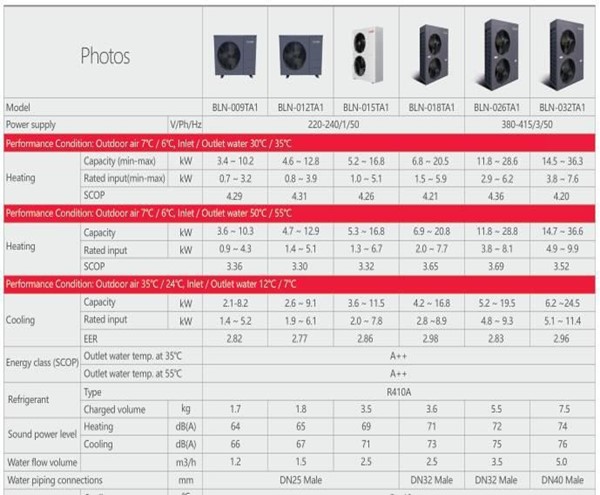 2: Toplotna črpalka z virom zraka EVI, temperatura okolice nižja do -15 stopinj, zmogljivost ogrevanja “NI” dušenja, enakomerno delovanje, COP 30 odstotkov višji od običajne toplotne črpalke, da zadosti povpraševanju po ogrevanju, hlajenju in topli vodi.